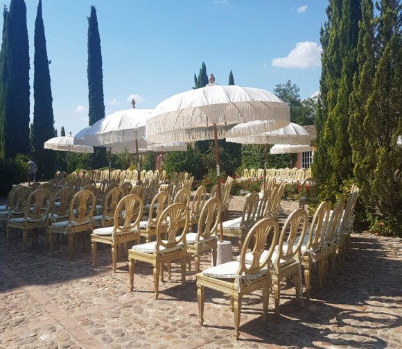Hay un sin fin de posibilidades como llenar la ceremonia de flores, velas, farolillos, poner un chill out durante el cóctel o llenarlo todo de candelabros, conjuntar las mesas del banquete con las flores o poner unos centros de mesa originales, colorear la pista de baile.... el abanico como veis es infinito.